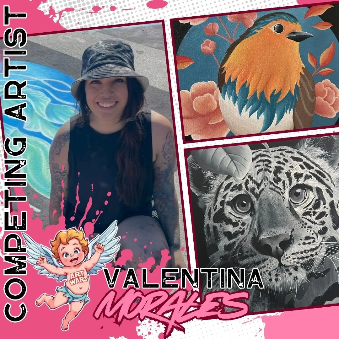 We’re thrilled to welcome Valentina Morales to the Valentine’s Day Edition of ART WARS 2026! A self-taught Colombian artist now based in sunny Florida, Valentina is known for her vibrant, nature-powered acrylic paintings that fuse animals, flowers, mandalas, and geometric patterns into one bold, colorful visual language. A longtime favorite at the Lake Worth Street Painting Festival since 2012, she brings sidewalks—and now canvases—to life with electric color and organic energy. Inspired by the beauty and rhythm of nature, Valentina is stepping into the Art Wars arena ready to create live, unleash her signature vibrancy, and light up the battlefield with color and soul!